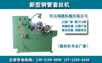 邢台市瑞捷机械制造有限公司专业生产圆钢套丝机,钢管套丝机两大系列,其特点主要展现为机头的优化改进,大幅度提高了加工螺纹丝头的精确度和工作效率,有效解决了本行业在加工丝扣上端部易扭转变形(丝扣加易扩口)、配件损耗高、加工效率低的技术难题。